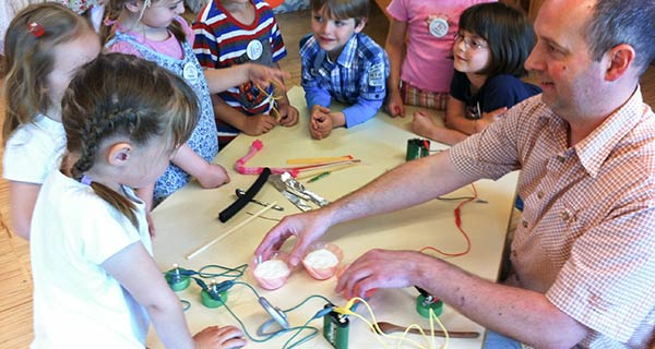 Väter von Kindern des evangelischen Kinderhauses Paul und Paulinchen in Kaufering hatten die Idee, Techniktage für ihre Sprösslinge zu organisieren. Dabei war das Ziel, mit den Kindern einfache technische Versuche durchzuführen und ihnen auf diese Weise verschiedene Naturgesetze zu erklären. Die Themen umfassen die Bereiche „Licht und Farben“, „Ton und Schall“, „Wasser und Luft“, „Feuer und Wärme“, „Kraft und Mechanik“ sowie „Strom und Energie“. Das Material für die Versuche kostet natürlich Geld. Hier unterstützt die Wilhelm Stemmer-Stiftung die Eigeninitiative der technikbegeisterten Väter.